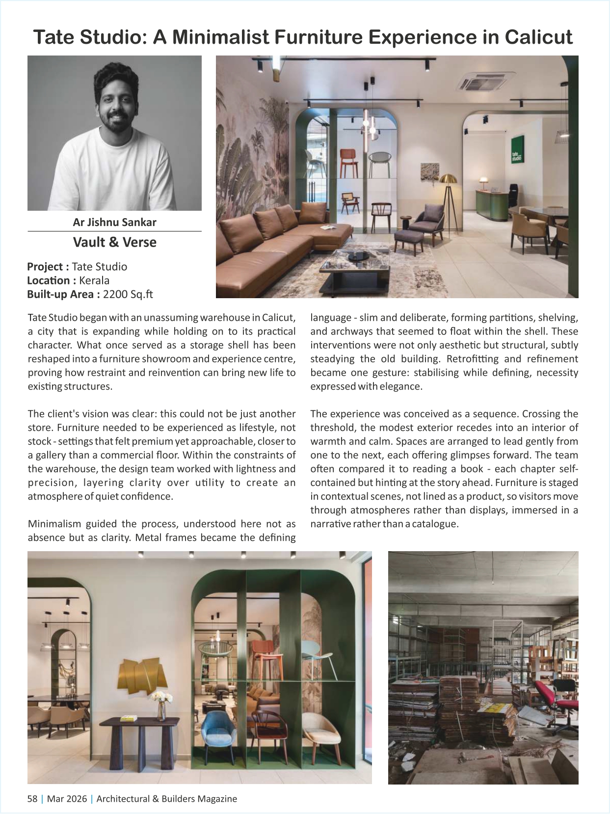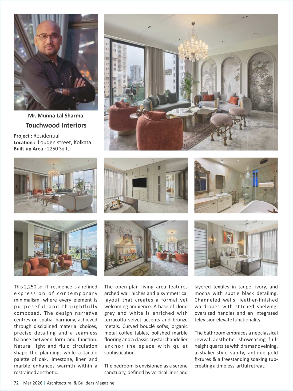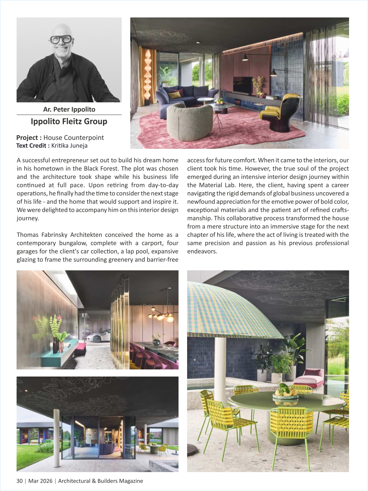 Welcome to the 53rd issue of Architectural and Builders Magazine. As every time, we have been bringing you amazing articles appreciated by readers from across the country, Our contant endeavor through this magazine has been to keep you updated with the latest trends in the industry as well as the business decisions and also at the same time help you understand what the customer wants. We call ourselves as trend hunters in the industry.